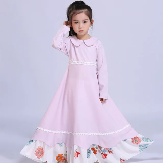 2018 Children Girls Muslim Abaya Islamic Dress Kids Girl Peter Pan