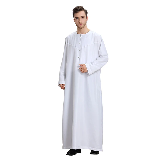 2019 Muslim Men White Long Sleeve Thobe Dress Men Islamic Clothing