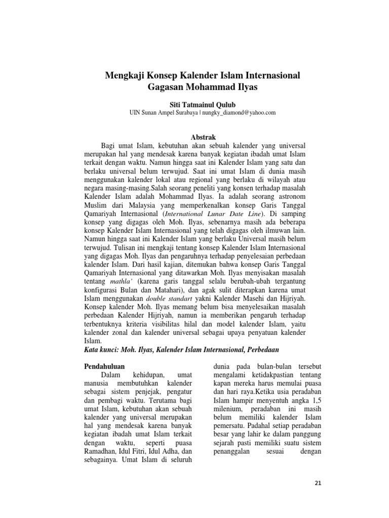 Konsep Kalender Islam Internasional Perspektif Mohammad Ilyas Al