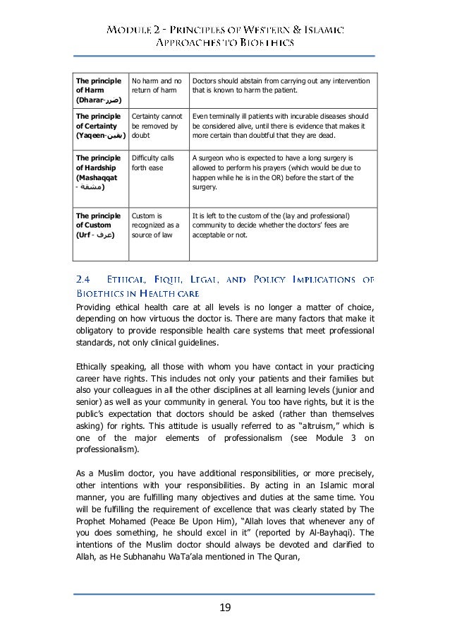 Module 2 Principles Of Western Islamic Approaches To Bioethics