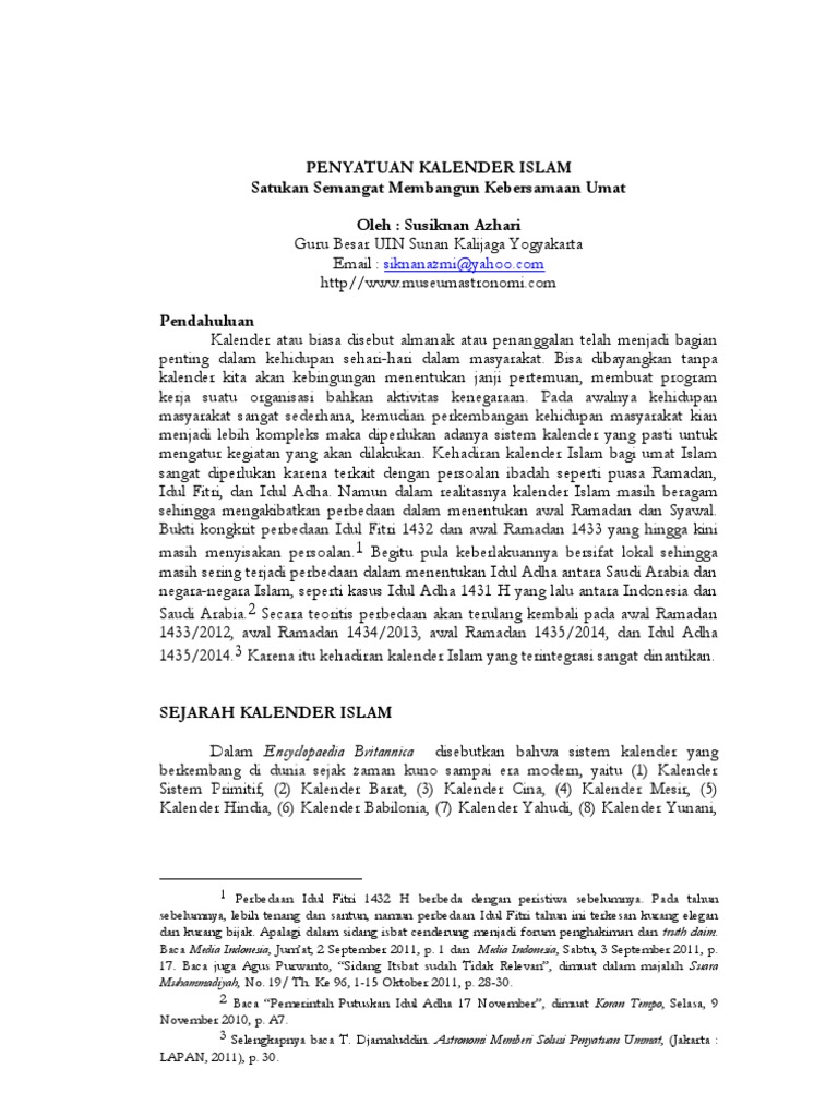 Penyatuan Kalender Islam Oleh Susiknan Azhari