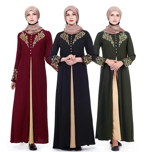2019 Eid Mubarak Worship Service Woman Muslim Abaya Dress Black Gold